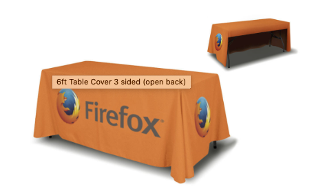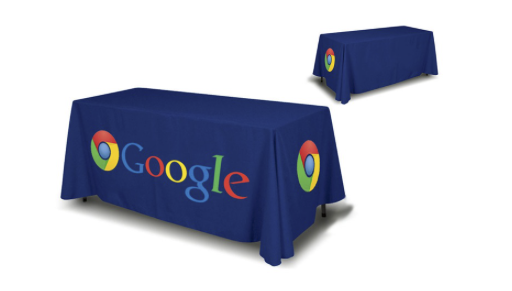 6′ and 8′ Table Throw. Open and Closed Back options available. Printed on 8.8 oz Polyester Table Fabric. Dye Sublimation. Scratch Resistant. Washable.